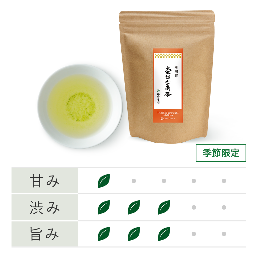 じっくりと熟成された壷切茶に、炒り玄米の香ばしさが絶妙に調和した「壷切玄米茶(つぼきりげんまいちゃ)」。口に含むと広がる”まろやかなうま味”の後には、煎茶らしいほのかな渋みと、あっさりとした玄米の味わいが追いかけてくるでしょう。さっぱりとした口当たりは、秋の味覚を楽しんだ後のお口直しにもちょうど良い一杯。熱湯を注ぐとたちまち広がる、香ばしい玄米の香りも楽しみの一つですね。