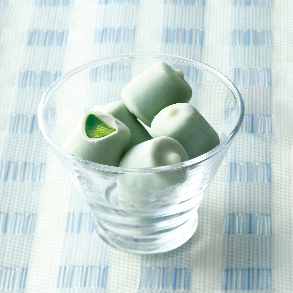 濃緑鮮やかな抹茶アイスとホワイトチョコのコントラストが美しい、ひと口サイズのアイスクリームです。口の中で、コーティングされたホワイトチョコレートが融け始めると、やがて濃厚な抹茶のコクと芳醇な香りが立ち、すっと消えゆきます。「もう一粒」、と思わず手が伸びる、抹茶一口アイスクリーム。便利な個包装タイプですので、分け合うシーンにもお使いいただけます。