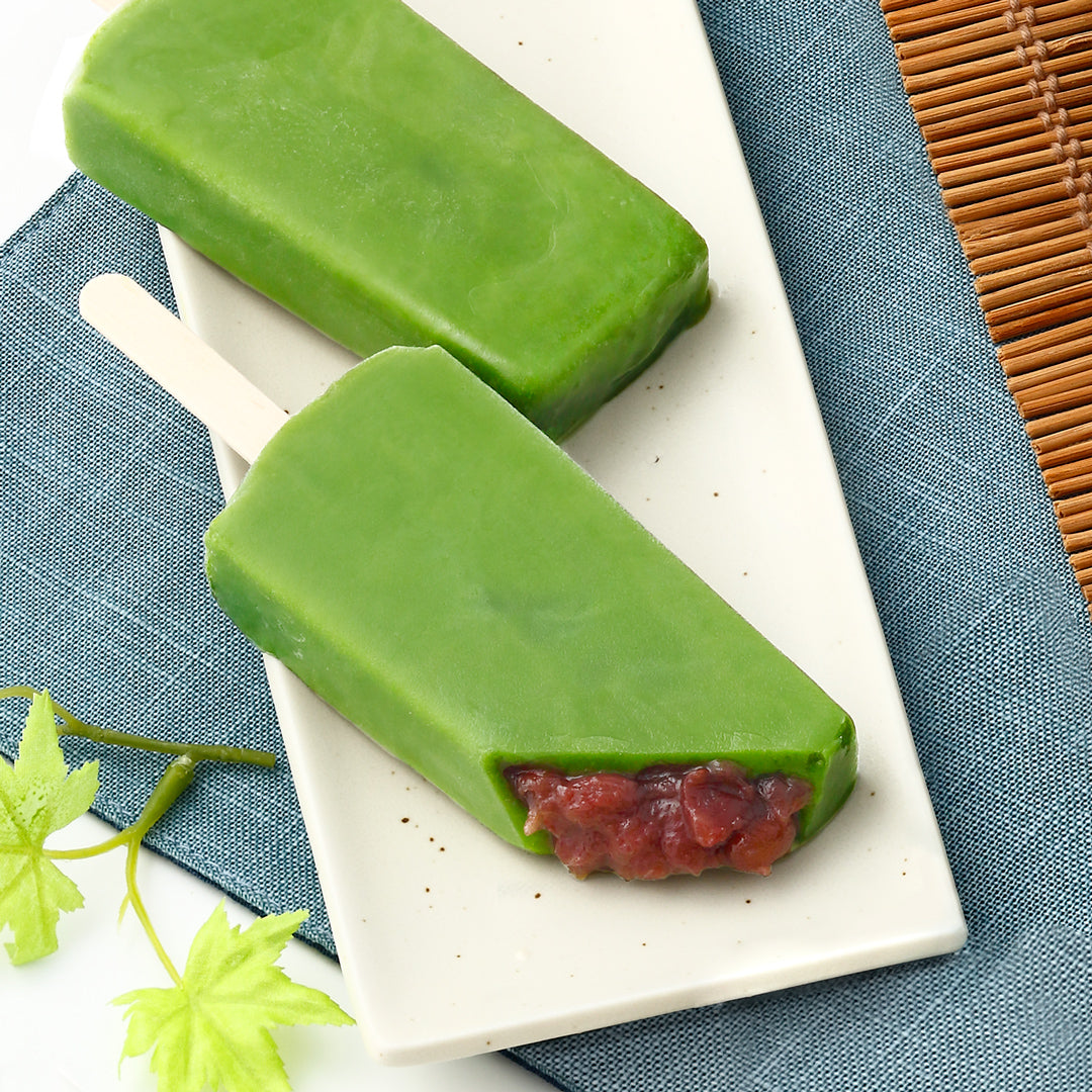 上質な抹茶を使用したアイスキャンディーであずきを包みました。爽やかな抹茶アイスキャンディーと相性の良いあずきの控えめな甘さは、夏にぴったりの涼菓です。