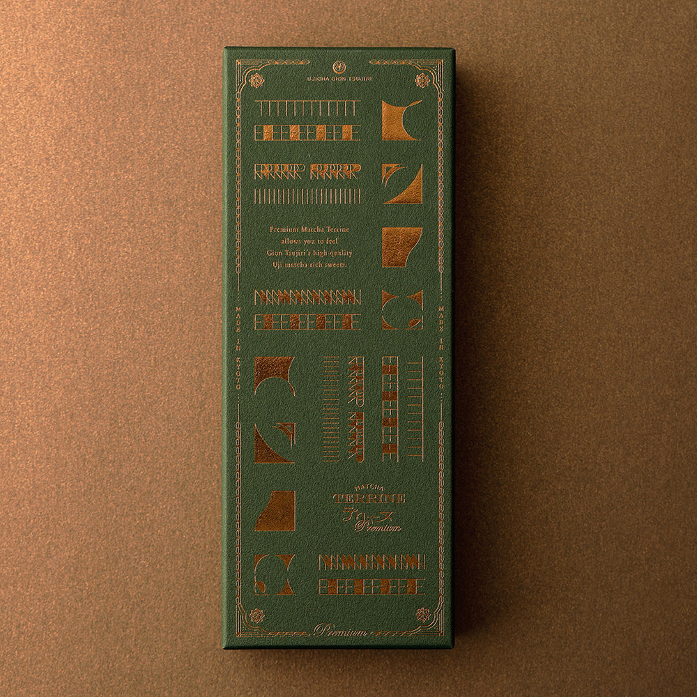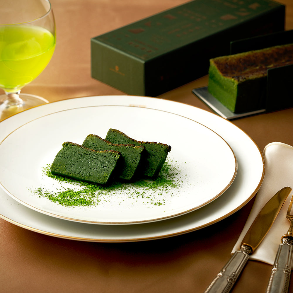 記憶に残るほどの抹茶スイーツ。その存在感を体現するパッケージには箔をあしらい、上品さと洗練感を身にまといました。大切なシーンに相応しい一品です。