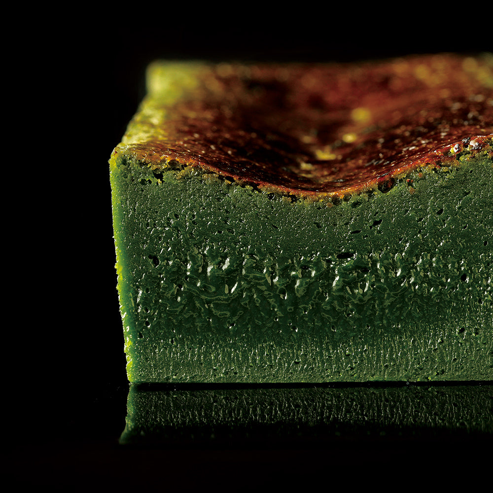 抹茶を贅沢に極限まで閉じ込めて仕上げました。口に含んだ瞬間に広がる濃厚な抹茶の風味・凝縮された旨み・心地よいほろ苦さと和三盆の香ばしいカラメリゼが調和し、余韻が広がります。「重厚感」・「口溶け」・「食感」全てのバランスを追求して作り上げました。