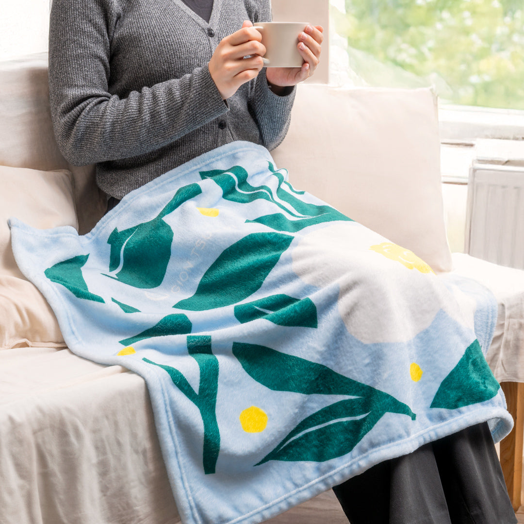 なめらかな手触り お茶のモチーフを散りばめた“オリジナルブランケット”