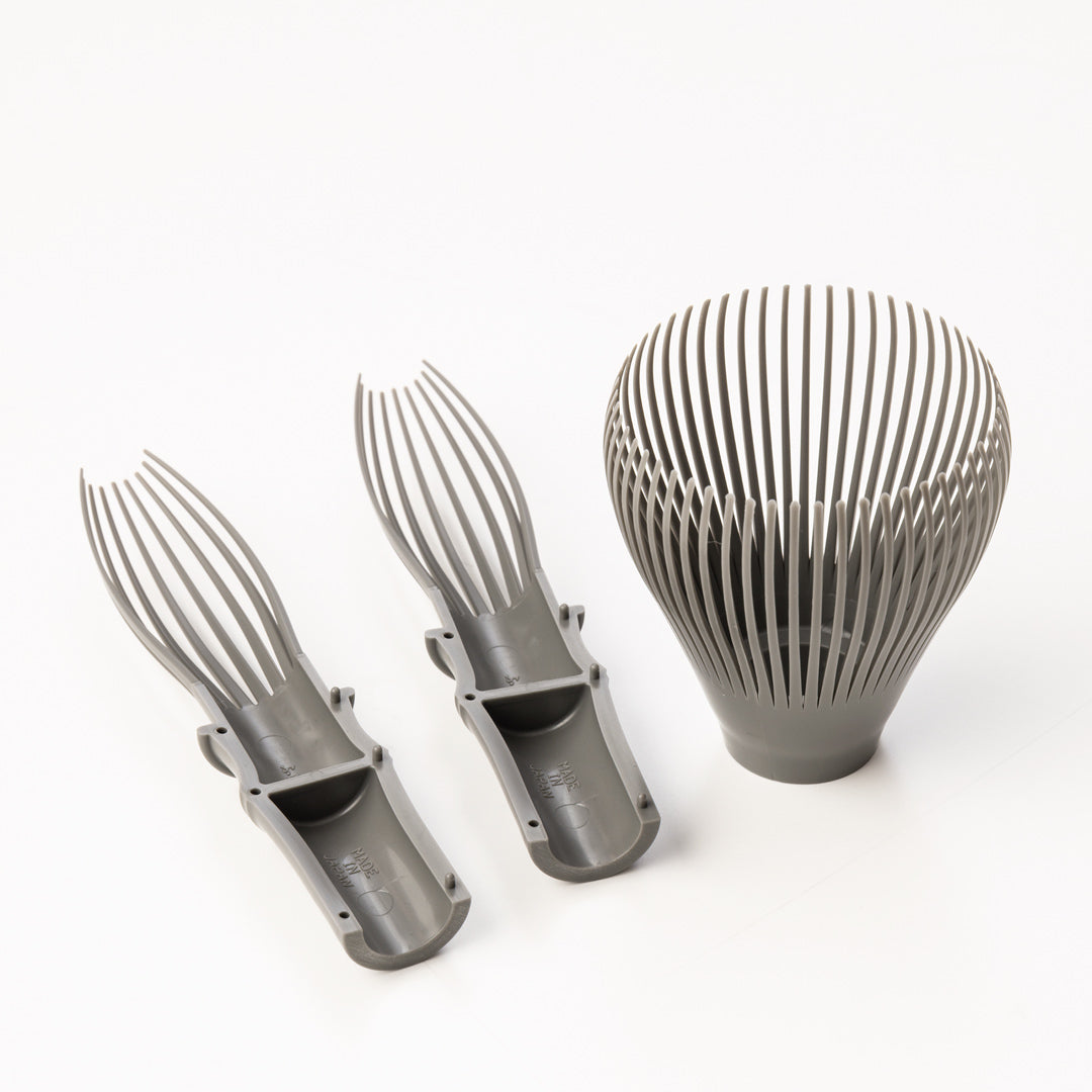耐久性の高いポリプロピレン製。竹製茶筅に比べ、穂先が折れにくく、力加減を気にせずお使いいただけます。熱湯をかけて付属のくせ直しにセットすることで、広がった穂先を整え、端正な形状を保ちながら長くご使用いただけます。